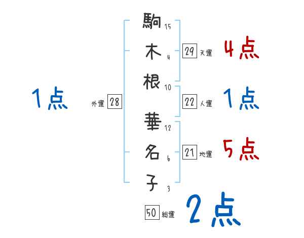 駒木根華名子さんの画数の鑑定結果