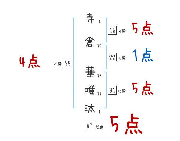 寺倉華唯汰さんの画数の鑑定結果