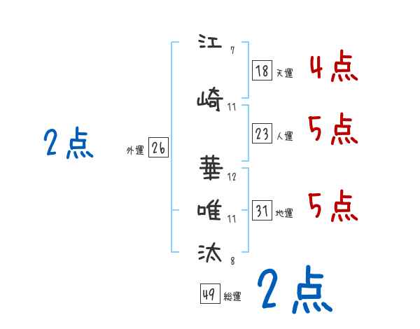 江崎華唯汰さんの画数の鑑定結果
