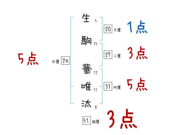 生駒華唯汰さんの画数の鑑定結果