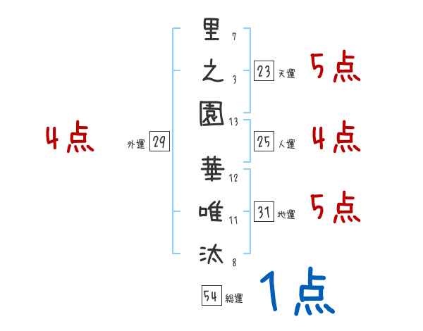 天運![]() | 里之園華唯汰さんの天運は23画の5つ星!想像力に優れ活力がある。一代で成功し名誉を手に入れる。 家系が持つ宿命的な運勢を表します。祖先から受け継いだ苗字ですので自分の力が及びません。家柄を象徴します。 |