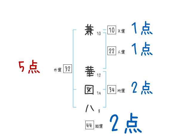 人運![]() | 兼華図八さんの人運は22画の1つ星!努力することが苦手ないっぽう手先が器用。芸術性にも優れる。 性格や才能などを表す2番目に重要な運勢です。人間関係や協調性、社会的な成功に影響します。主に20歳から50歳ぐらいまでの中年期の運勢を表します。 |