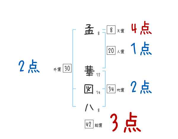 天運![]() | 孟華図八さんの天運は8画の4つ星!勤勉家。根気強く努力し成功する。忍耐力がある。 家系が持つ宿命的な運勢を表します。祖先から受け継いだ苗字ですので自分の力が及びません。家柄を象徴します。 |