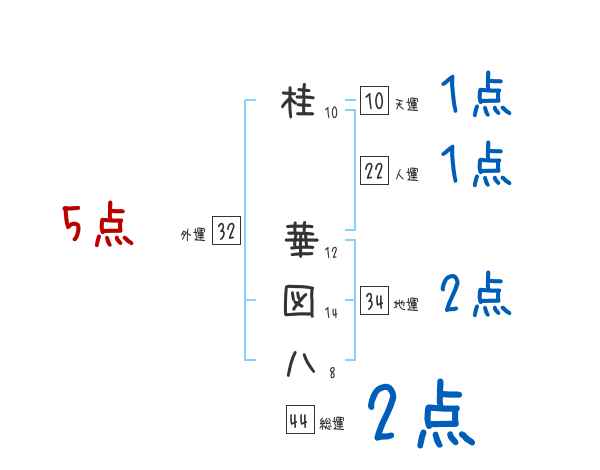 人運![]() | 桂華図八さんの人運は22画の1つ星!努力することが苦手ないっぽう手先が器用。芸術性にも優れる。 性格や才能などを表す2番目に重要な運勢です。人間関係や協調性、社会的な成功に影響します。主に20歳から50歳ぐらいまでの中年期の運勢を表します。 |
