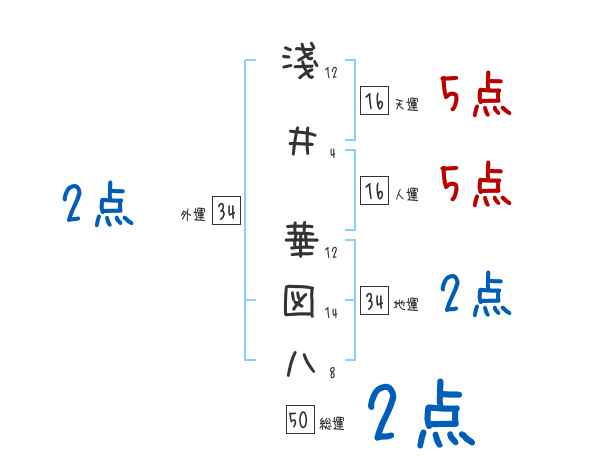 人運![]() | 淺井華図八さんの人運は16画の5つ星!人望が厚く大きく発展する。逆転成功が見える。 性格や才能などを表す2番目に重要な運勢です。人間関係や協調性、社会的な成功に影響します。主に20歳から50歳ぐらいまでの中年期の運勢を表します。 |