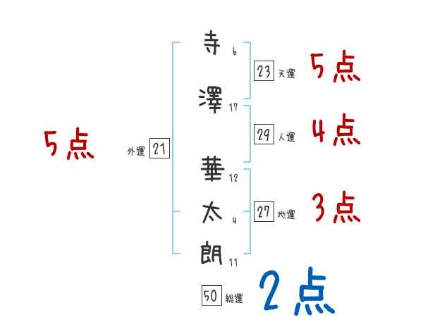 寺澤華太朗さんの外運は21画の5つ星
