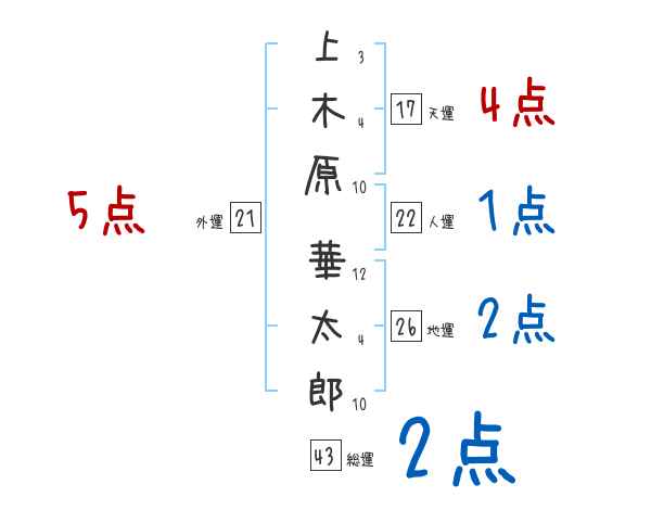 外運![]() | 上木原華太郎さんの外運は21画の5つ星!統率力がある。独立し成功する。名誉を手に入れる。 生活面を象徴する運勢です。外部から受ける影響力を表し、結婚運、家庭運や職場、環境への順応性を表します。 |