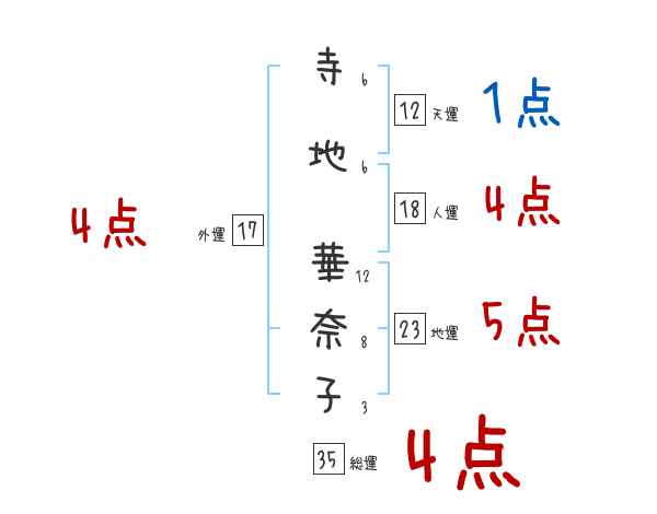寺地華奈子さんの画数の鑑定結果