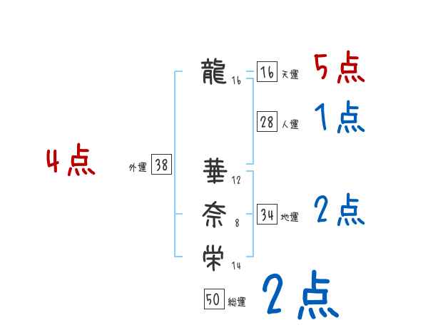 天運![]() | 龍華奈栄さんの天運は16画の5つ星!人望が厚く大きく発展する。逆転成功が見える。 家系が持つ宿命的な運勢を表します。祖先から受け継いだ苗字ですので自分の力が及びません。家柄を象徴します。 |