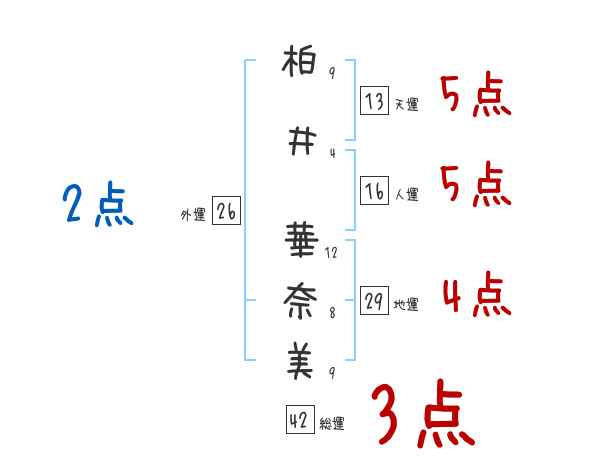 総運![]() | 柏井華奈美さんの総運は42画の3つ星!病気に注意。多芸であるが消極的でおとなしい。 あなたの人生を表す1番重要な運勢です。生涯を通じて影響する総合運となり、主に50歳以降の晩年期に影響を及ぼします。 |
