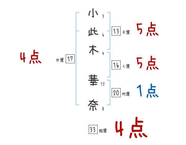 小此木華奈さんの画数の鑑定結果