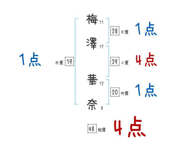 梅澤華奈さんの画数の鑑定結果