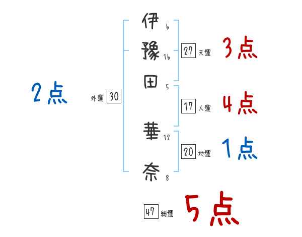 伊豫田華奈さんの画数の鑑定結果