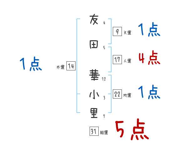 友田華小里さんの画数の鑑定結果
