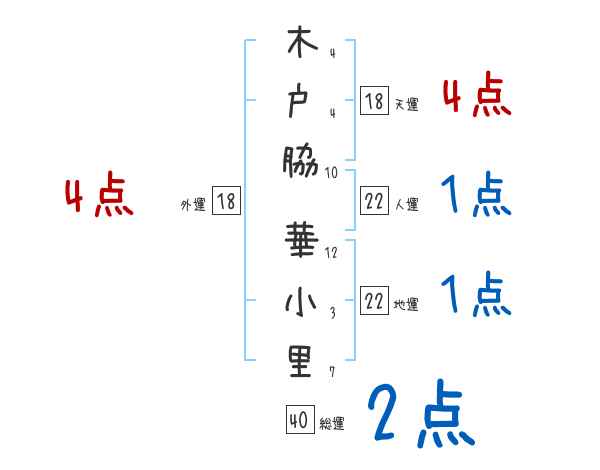 木戸脇華小里さんの外運は18画の4つ星