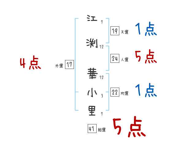 江渕華小里さんの画数の鑑定結果