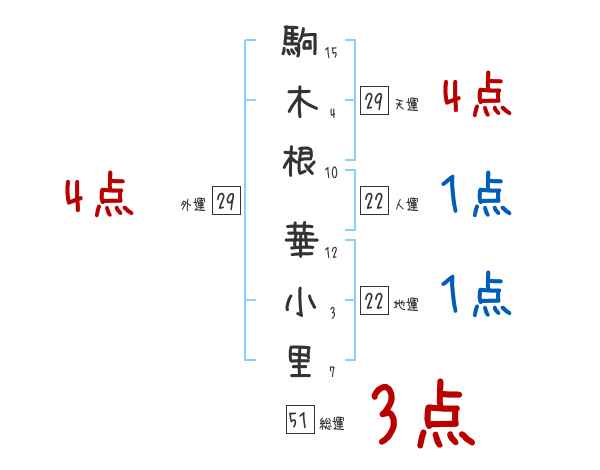 駒木根華小里さんの画数の鑑定結果