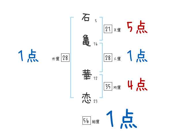 石亀華恋さんの画数の鑑定結果