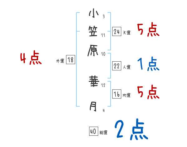 小笠原華月さんの画数の鑑定結果