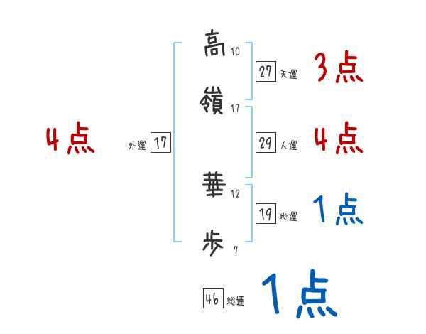 高嶺華歩さんの画数の鑑定結果