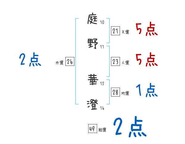 庭野華澄さんの画数の鑑定結果