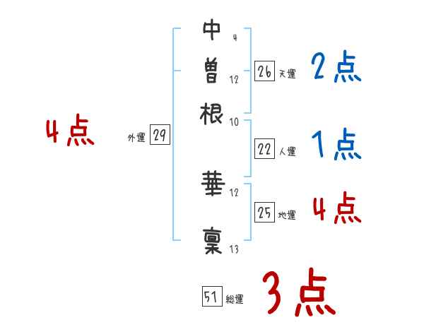 中曽根華稟さんの画数の鑑定結果
