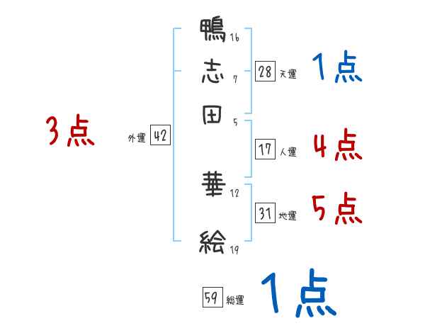 天運![]() | 鴨志田華絵さんの天運は28画の1つ星!家庭環境に注意。スポーツで活躍できる能力があるかも。 家系が持つ宿命的な運勢を表します。祖先から受け継いだ苗字ですので自分の力が及びません。家柄を象徴します。 |