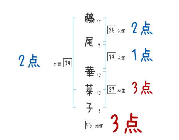 天運![]() | 藤尾華菜子さんの天運は26画の2つ星!波瀾万丈かも。信頼できる人を大事にしましょう。 家系が持つ宿命的な運勢を表します。祖先から受け継いだ苗字ですので自分の力が及びません。家柄を象徴します。 |