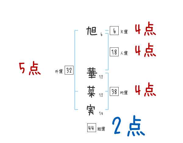 旭華菜実さんの画数の鑑定結果