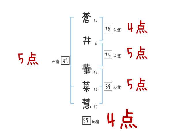 ただ、あまり画数の運勢に固執しすぎないで、やはり漢字や響きのイメージを大事にされると良いと思います。ご両親がかわいいお子様に、こんな子に育ってほしいと願い想いを込めて、名前を考えられる事が何より大事です。