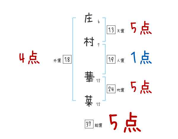 庄村華菜さんの画数の鑑定結果