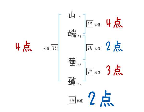 外運![]() | 山端華蓮さんの外運は18画の4つ星!情熱的で剛気。忍耐力があり信頼される。 生活面を象徴する運勢です。外部から受ける影響力を表し、結婚運、家庭運や職場、環境への順応性を表します。 |