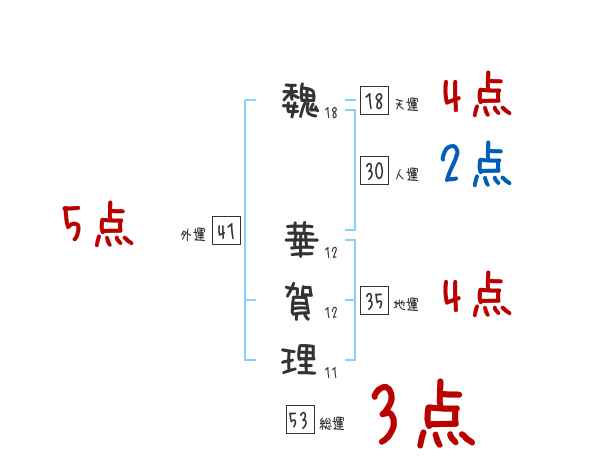 魏華賀理さんの画数の鑑定結果