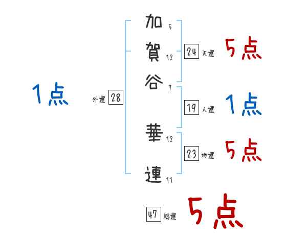 加賀谷華連さんの画数の鑑定結果