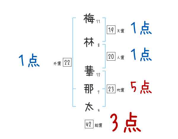 総運![]() | 梅林華那太さんの総運は42画の3つ星!病気に注意。多芸であるが消極的でおとなしい。 あなたの人生を表す1番重要な運勢です。生涯を通じて影響する総合運となり、主に50歳以降の晩年期に影響を及ぼします。 |
