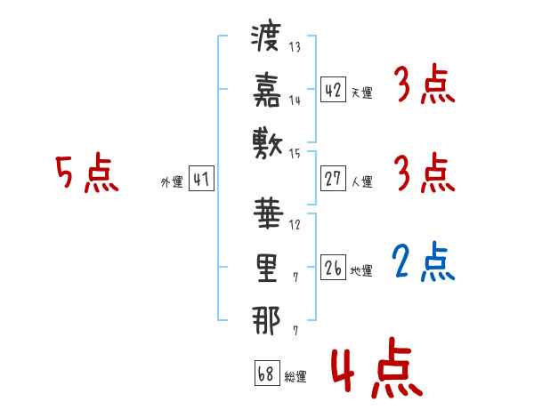 渡嘉敷華里那さんの画数の鑑定結果