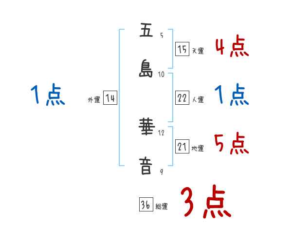 外運![]() | 五島華音さんの外運は14画の1つ星!人に対して優しいがストレスを溜め込みがち。人間関係のトラブルを避けるよう気をつけましょう。 生活面を象徴する運勢です。外部から受ける影響力を表し、結婚運、家庭運や職場、環境への順応性を表します。 |