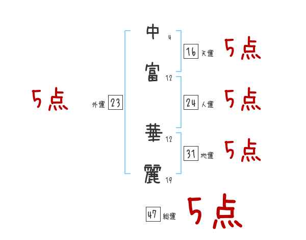 中富華麗さんの画数の鑑定結果