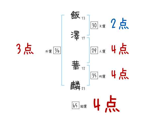 飯澤華麟さんの画数の鑑定結果