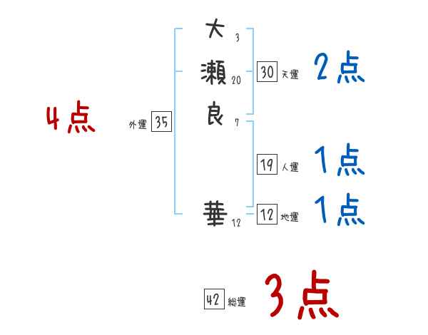 大瀬良華さんの画数の鑑定結果