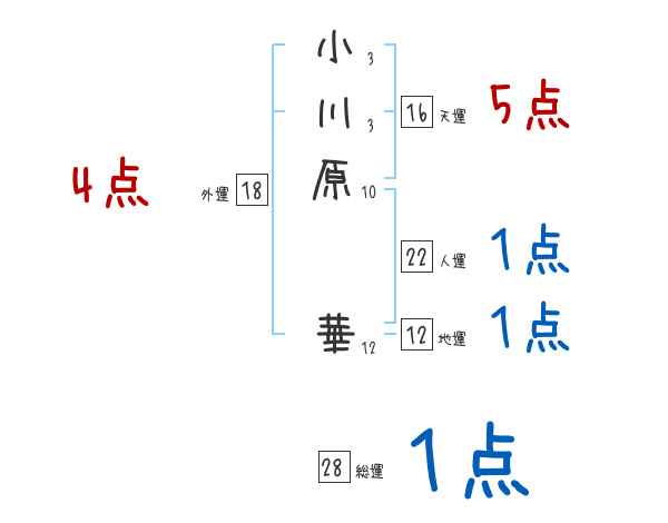 小川原華さんの画数の鑑定結果