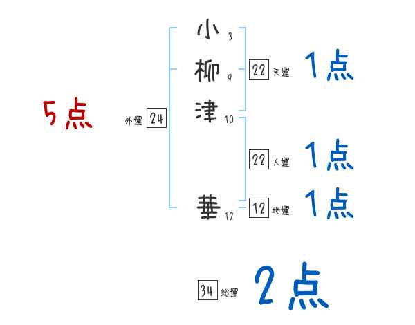 小柳津華さんの画数の鑑定結果