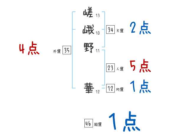 嵯峨野華さんの画数の鑑定結果