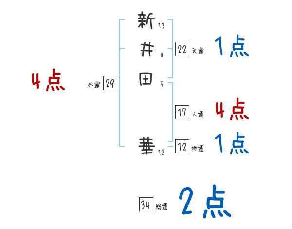 新井田華さんの画数の鑑定結果