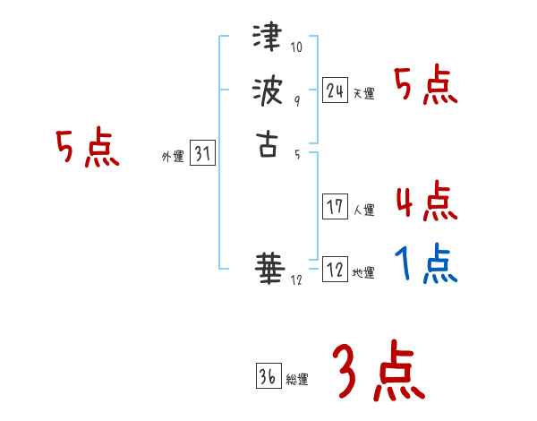天運![]() | 津波古華さんの天運は24画の5つ星!家庭運が良く順調な人生。金運にも恵まれる。 家系が持つ宿命的な運勢を表します。祖先から受け継いだ苗字ですので自分の力が及びません。家柄を象徴します。 |