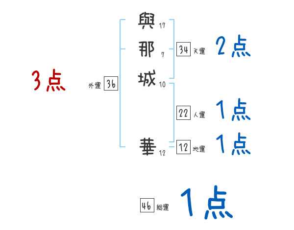 人運![]() | 與那城華さんの人運は22画の1つ星!努力することが苦手ないっぽう手先が器用。芸術性にも優れる。 性格や才能などを表す2番目に重要な運勢です。人間関係や協調性、社会的な成功に影響します。主に20歳から50歳ぐらいまでの中年期の運勢を表します。 |