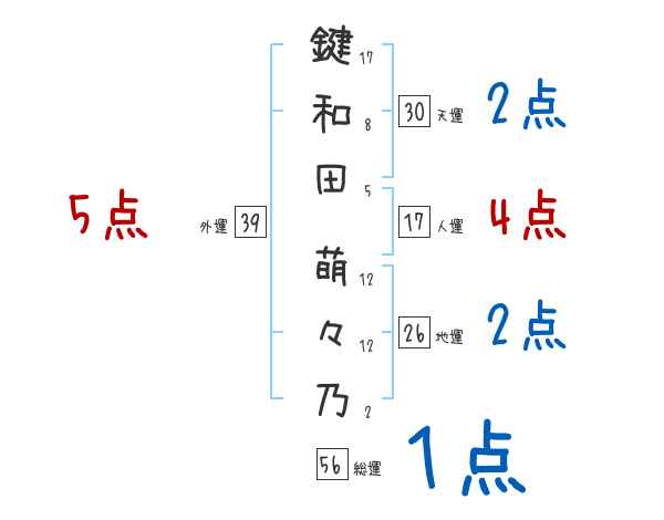 外運![]() | 鍵和田萌々乃さんの外運は39画の5つ星!社交性に優れ人望が厚い。人の上に立ち成功する。 生活面を象徴する運勢です。外部から受ける影響力を表し、結婚運、家庭運や職場、環境への順応性を表します。 |