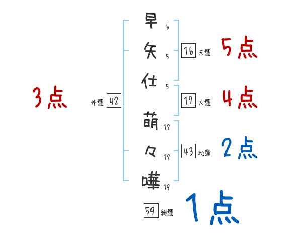 早矢仕萌々嘩さんの画数の鑑定結果