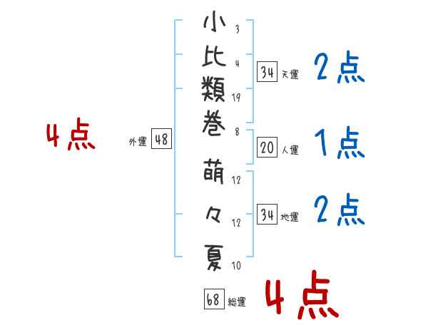 小比類巻萌々夏さんの画数の鑑定結果