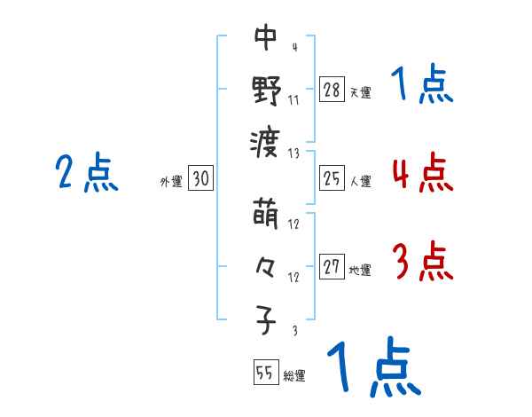 天運![]() | 中野渡萌々子さんの天運は28画の1つ星!家庭環境に注意。スポーツで活躍できる能力があるかも。 家系が持つ宿命的な運勢を表します。祖先から受け継いだ苗字ですので自分の力が及びません。家柄を象徴します。 |